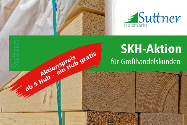 Wir wollen mithelfen, Bauen mit Holz attraktiver zu machen. Für alle Großhandelskunden bieten wir darum im Rahmen unserer SKH-Aktion unser Suttner Konstruktionsholz SKH zu Sonderkonditionen an.
